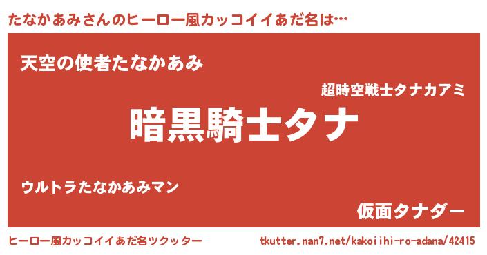 | ポケモン風あだ名 | 『タナキング』『ヒタナカアミ』 |