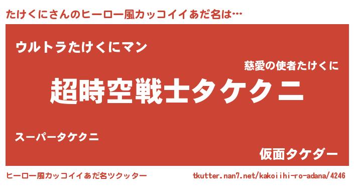 | ファンタジー風あだ名 | 『ゼタケトゥ』『エターナルタケクニー』 |