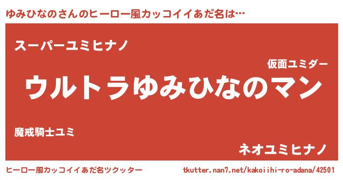 | ファンタジー風あだ名 | 『エターナルユミヒナノー』『ユミフェル』 |