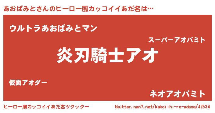 | 男性向けラノベタイトル風あだ名 | 『あおばみとの嫁は女の子じゃないと思った?』 |