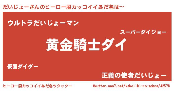 | 男性向けラノベタイトル風あだ名 | 『緋弾のダイジョー』 |