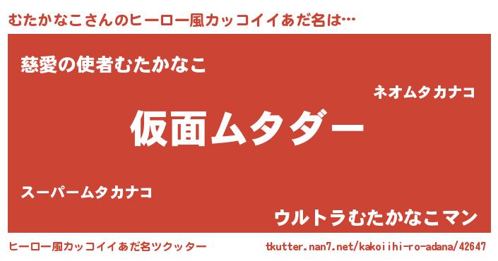 | 胡散臭い通販商品みたいなあだ名 | 『あなたにだけ特別に提供する世界で10本だけ現存している希少なブランデー…その名も「むたかなこ」』 |