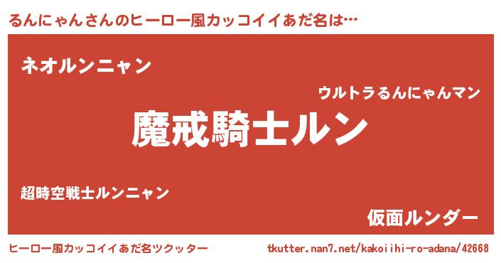 | 男性向けラノベタイトル風あだ名 | 『ルンニャンスレイヤー』 |