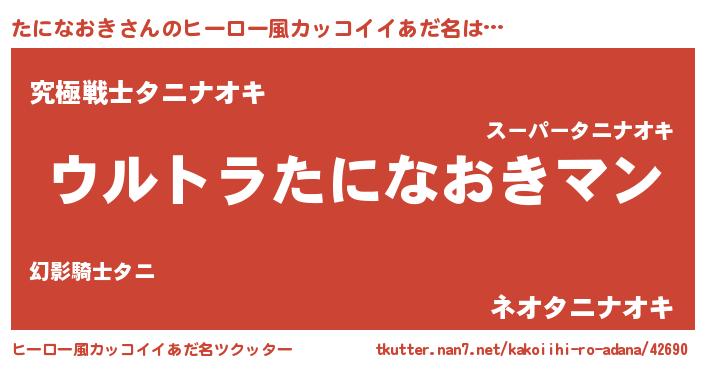 | 男性向けラノベタイトル風あだ名 | 『うちのたになおきが世界を掌握している!』 |