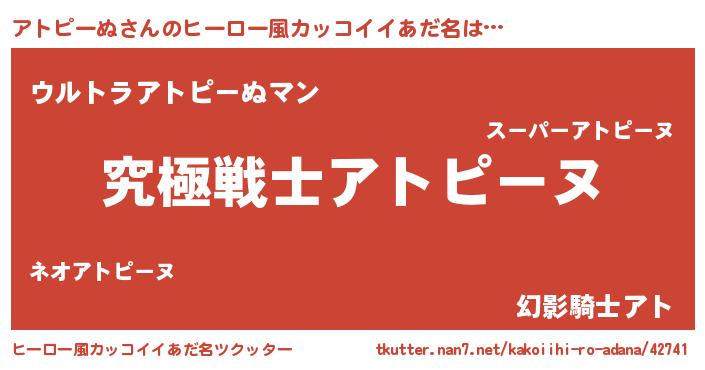 | ファンタジー風あだ名 | 『ゼアトトゥ』『エターナルアトピーヌー』 |