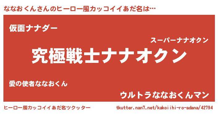 | 男性向けラノベタイトル風あだ名 | 『Re:ななおくんから始める異世界生活』 |