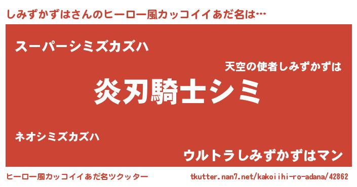 | 男性向けラノベタイトル風あだ名 | 『しみずかずは~年齢イコール彼女いない歴の魔法使い~』 |