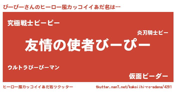 | 男性向けラノベタイトル風あだ名 | 『おまえをオタクにしてやるから、俺をびーぴーにしてくれ! 』 |