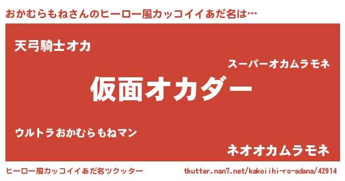 | 男性向けラノベタイトル風あだ名 | 『この素晴らしい世界におかむらもねを!』 |