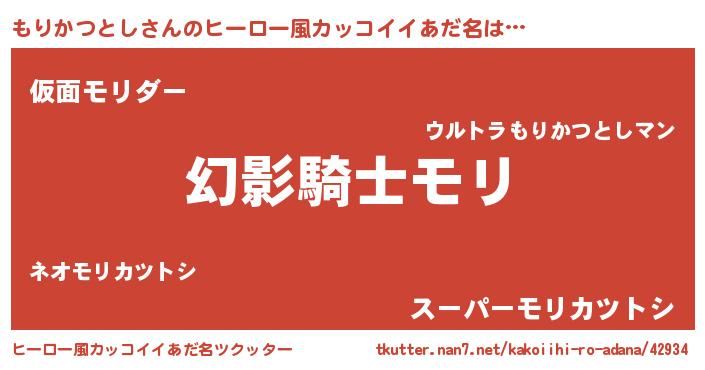 | 男性向けラノベタイトル風あだ名 | 『もりかつとしの嫁は女の子じゃないと思った?』 |
