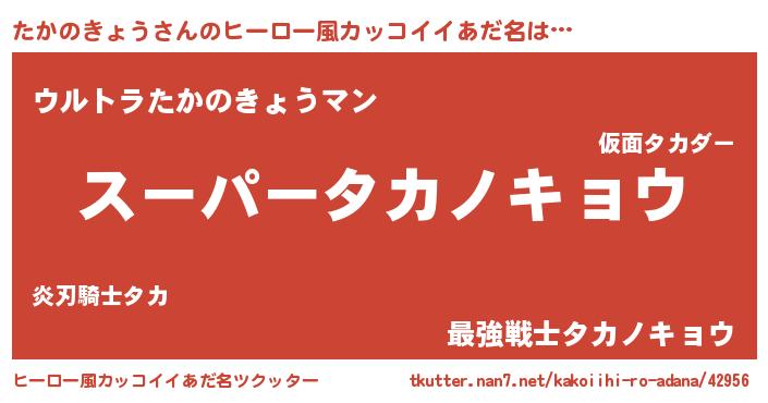 | 男性向けラノベタイトル風あだ名 | 『タカノキョウアートオンライン』 |