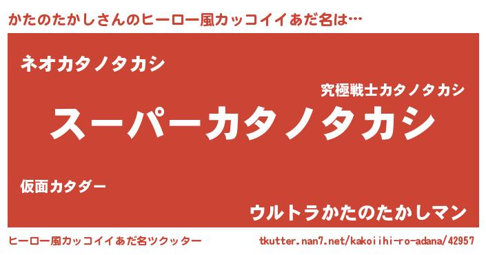 | 男性向けラノベタイトル風あだ名 | 『カタノタカシアートオンライン』 |