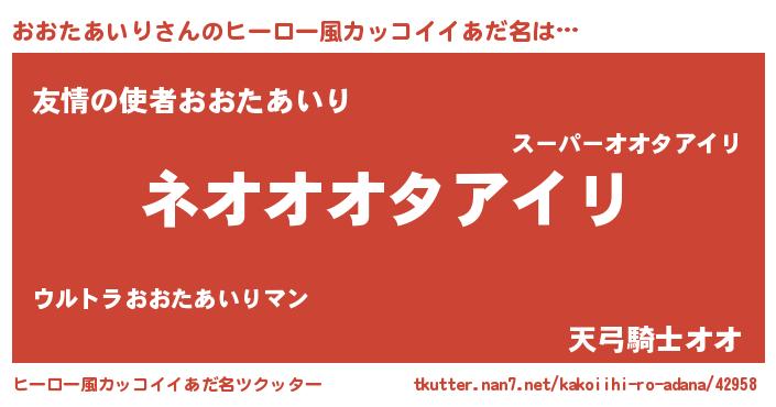 | 意味不明あだ名 | 『永久保存おおたあいり』 |