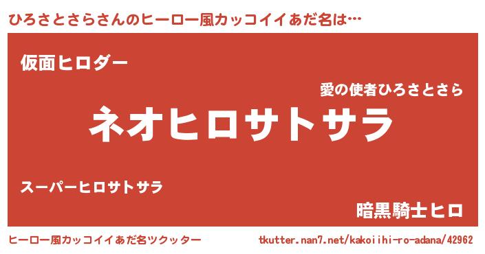 ひろさとさらさんのヒーロー風カッコイイあだ名をツクッター!
