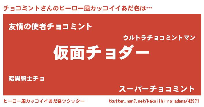 | 男性向けラノベタイトル風あだ名 | 『この素晴らしい世界にチョコミントを!』 |