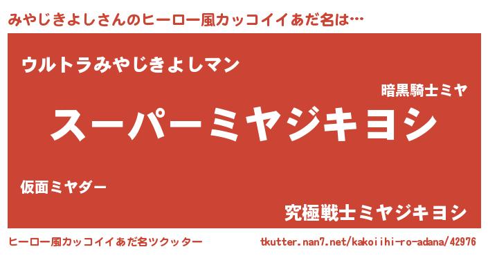 | 男性向けラノベタイトル風あだ名 | 『ミヤジキヨシアートオンライン』 |
