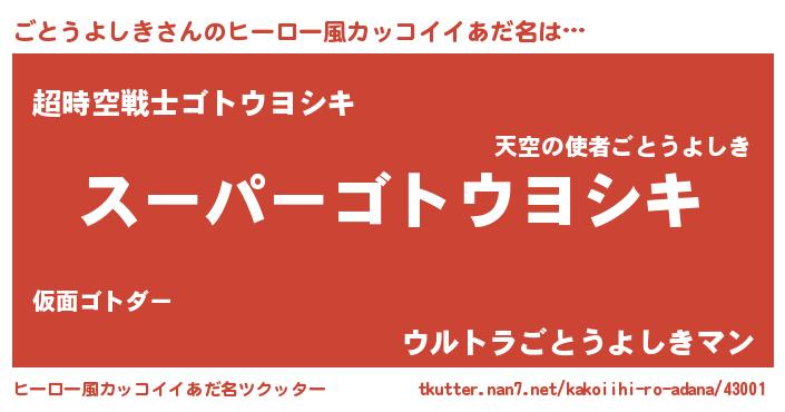 | 男性向けラノベタイトル風あだ名 | 『ごとうよしきに滅ぼされるだけの簡単なお仕事です』 |