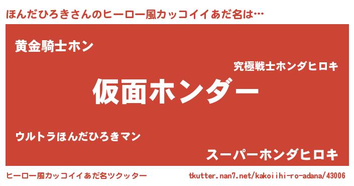 | 男性向けラノベタイトル風あだ名 | 『魔弾の王とほんだひろき』 |