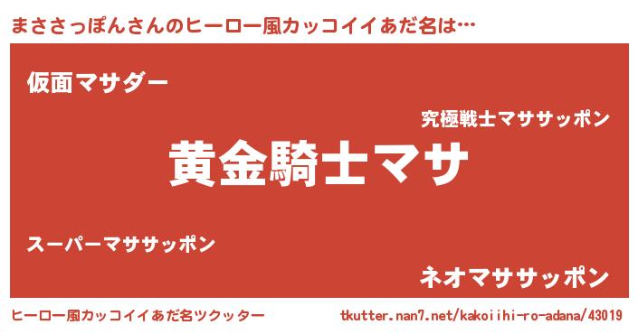 | 男性向けラノベタイトル風あだ名 | 『ダンジョンにまささっぽんを求めるのは間違っているだろうか』 |