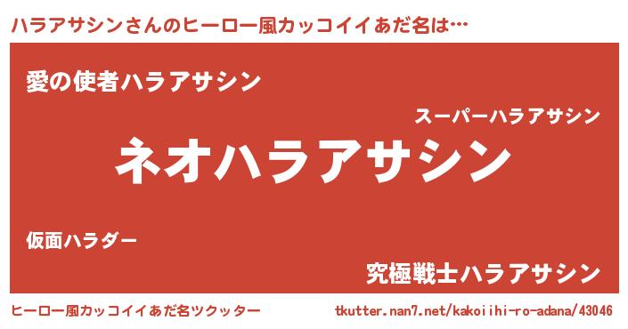 | 男性向けラノベタイトル風あだ名 | 『ハラアサシンという概念が存在しない退屈な世界 』 |