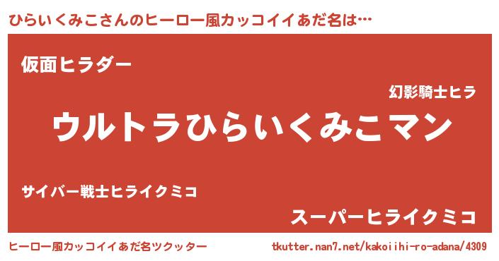 | ファンタジー風あだ名 | 『エターナルヒライクミコー』 |
