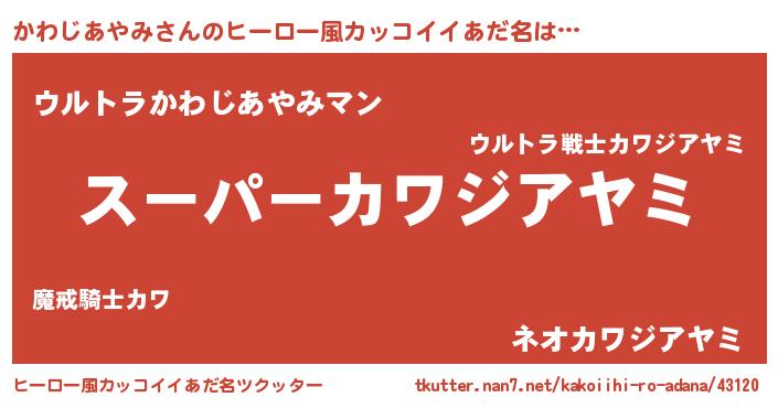 | 胡散臭い通販商品みたいなあだ名 | 『億万長者になれるブレスレット…その名も「かわじあやみ」』 |