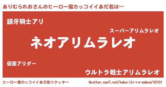 | 男性向けラノベタイトル風あだ名 | 『ありむられおという概念が存在しない退屈な世界 』 |