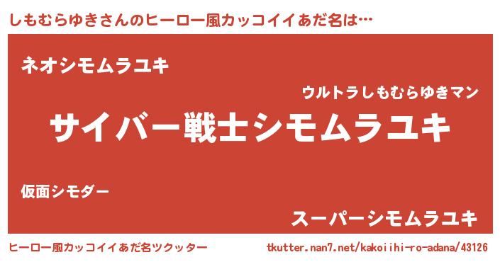 | 男性向けラノベタイトル風あだ名 | 『転生したらしもむらゆきだった件』 |