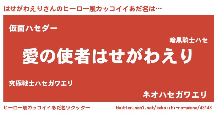| ヘコむあだ名 | 『はせがわえり(笑)』『はせを』 |