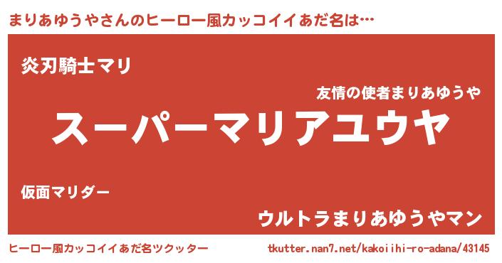 | 胡散臭い通販商品みたいなあだ名 | 『億万長者になれるブレスレット…その名も「まりあゆうや」』 |