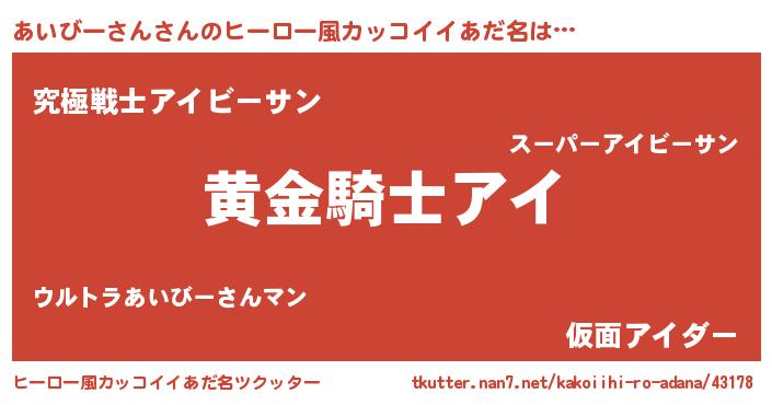 | 意味不明あだ名 | 『とにかく怪しいあいびーさん』 |