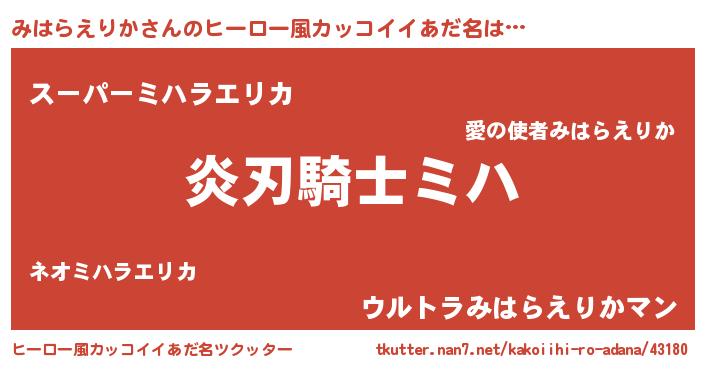 | 胡散臭い通販商品みたいなあだ名 | 『全米が絶賛したサプリメント…その名も「みはらえりか」』 |