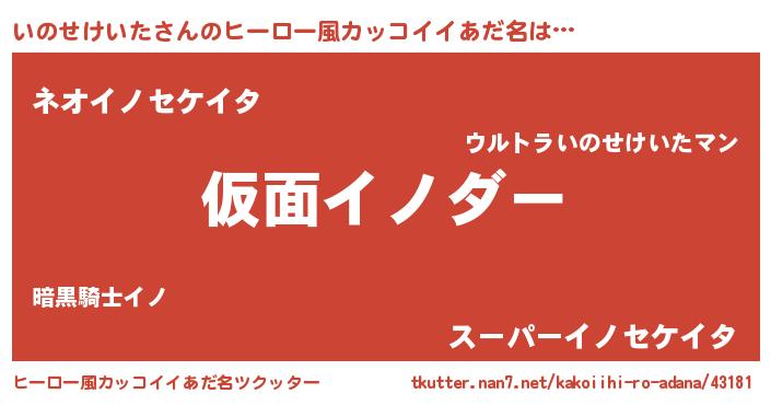 | 伝説のあだ名 | 『聞きしに勝る勇者いのせけいた』 |