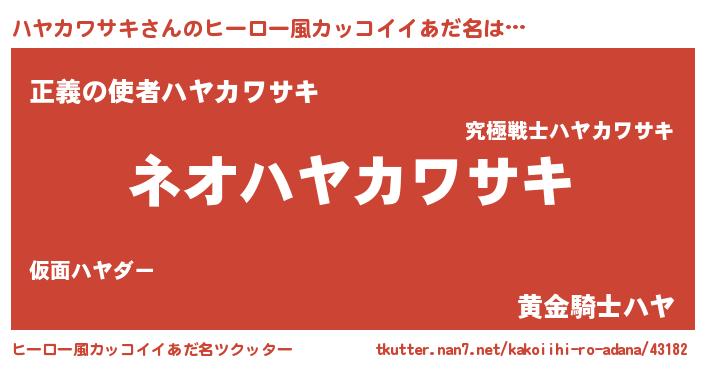 | ヘコむあだ名 | 『ハヤカワサキ(遠い目)』『ハヤを』 |