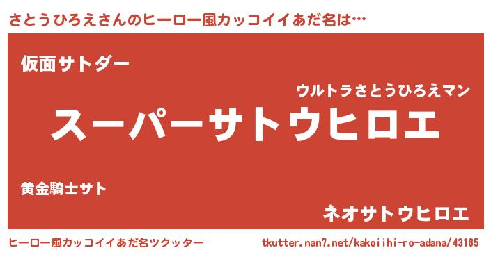 | 男性向けラノベタイトル風あだ名 | 『サトウヒロエスレイヤー』 |