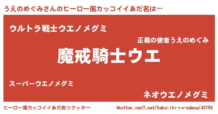 | ポケモン風あだ名 | 『ヒウエノメグミ』『ウエセウス』 |