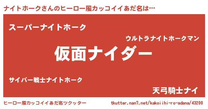 | 男性向けラノベタイトル風あだ名 | 『この素晴らしい世界にナイトホークを!』 |