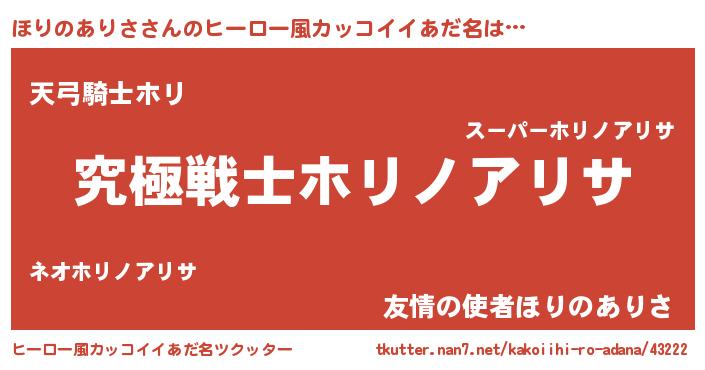 | 女子向けラノベタイトル風あだ名 | 『ほりのありさストレイドッグス』 |