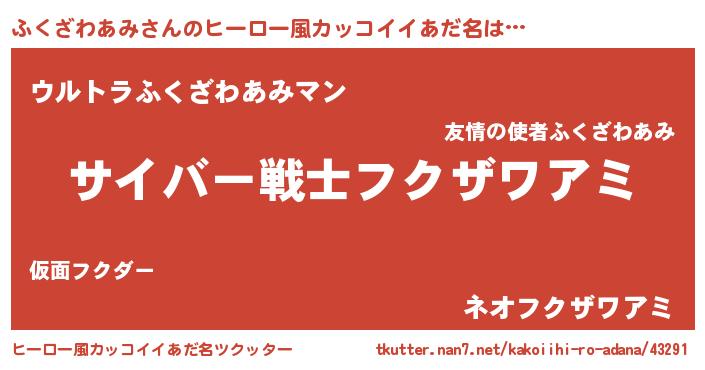 | 女子向けラノベタイトル風あだ名 | 『ふくざわあみの玉の輿計画!』 |