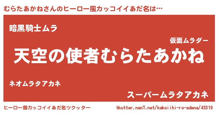 | 男性向けラノベタイトル風あだ名 | 『うちのむらたあかねが世界を掌握している!』 |
