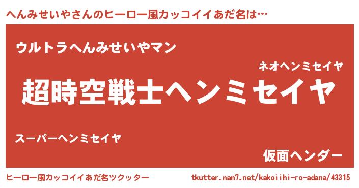 | 肩書あだ名 | 『へんみせいや総統』『へんみせいや教官』 |