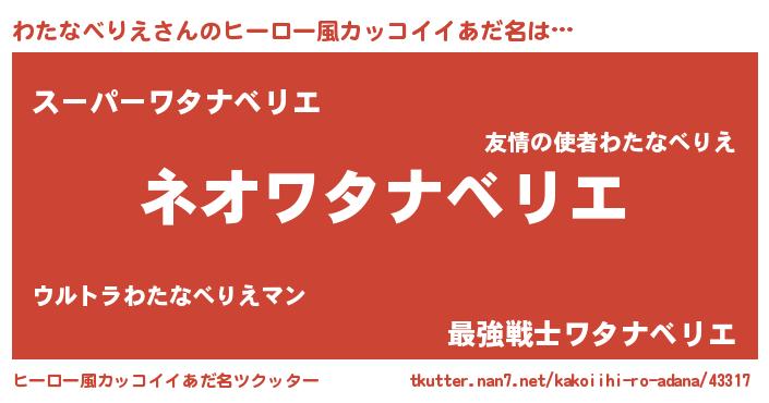 | ヘコむあだ名 | 『わたなべりえ(笑)』『わたっふぃ~』 |