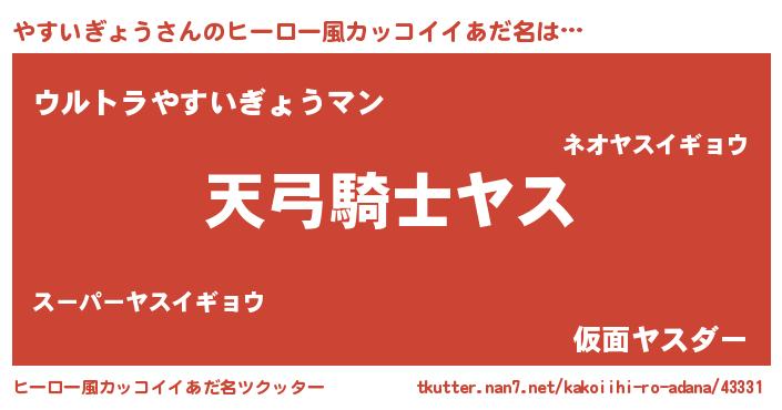 | 男性向けラノベタイトル風あだ名 | 『やすいぎょうの嫁は女の子じゃないと思った?』 |