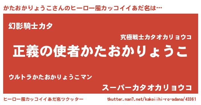 | ポケモン風あだ名 | 『カックウザ』『ヒカタオカリョウコ』 |