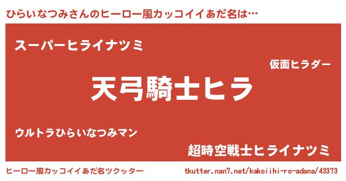 ひらいなつみさんのヒーロー風カッコイイあだ名をツクッター!