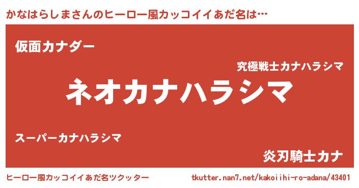 | ヘコむあだ名 | 『かなはらしま(遠い目)』『かな太郎』 |