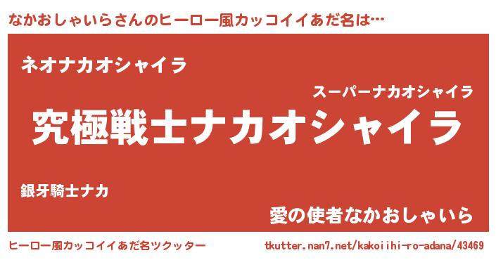 | ヘコむあだ名 | 『なかおしゃいら(遠い目)』『なかにゅー』 |