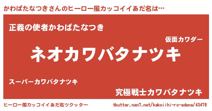 | 胡散臭い通販商品みたいなあだ名 | 『絶対に幸福をもたらす水素水…その名も「かわばたなつき」』 |