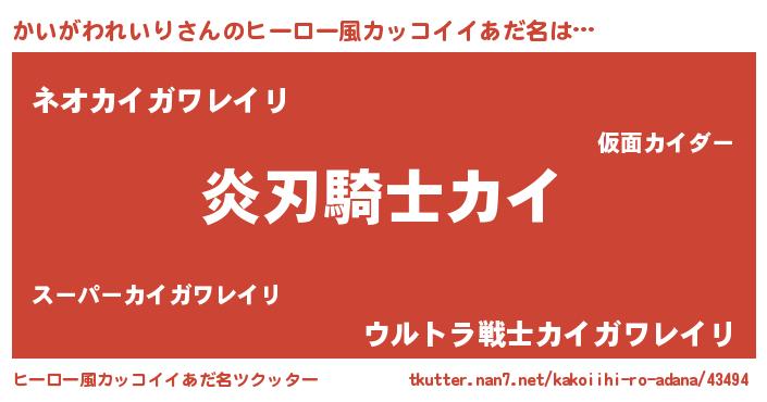 | ヘコむあだ名 | 『かいっちょ』『かいがわれいり(笑)』 |