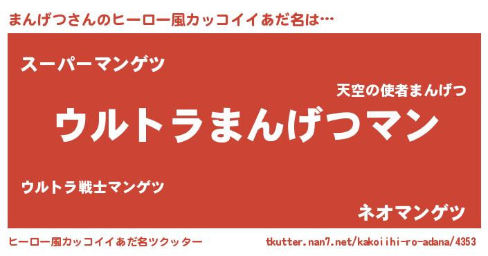 | 男性向けラノベタイトル風あだ名 | 『やはりまんげつの青春ラブコメはまちがっている 』 |